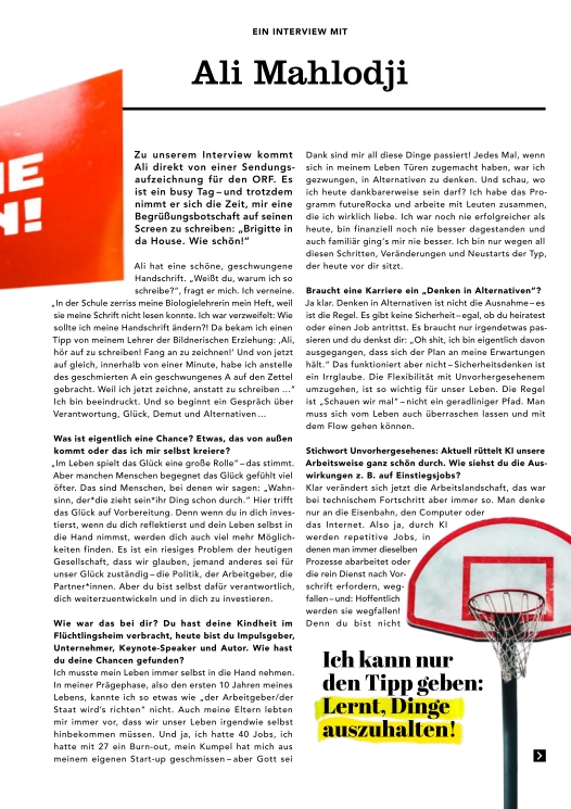 Fotoreportage des Interviews von Brigitte Kuchenbecker mit Ali Mahlodji für das WU ZBP Karrieremagazin.